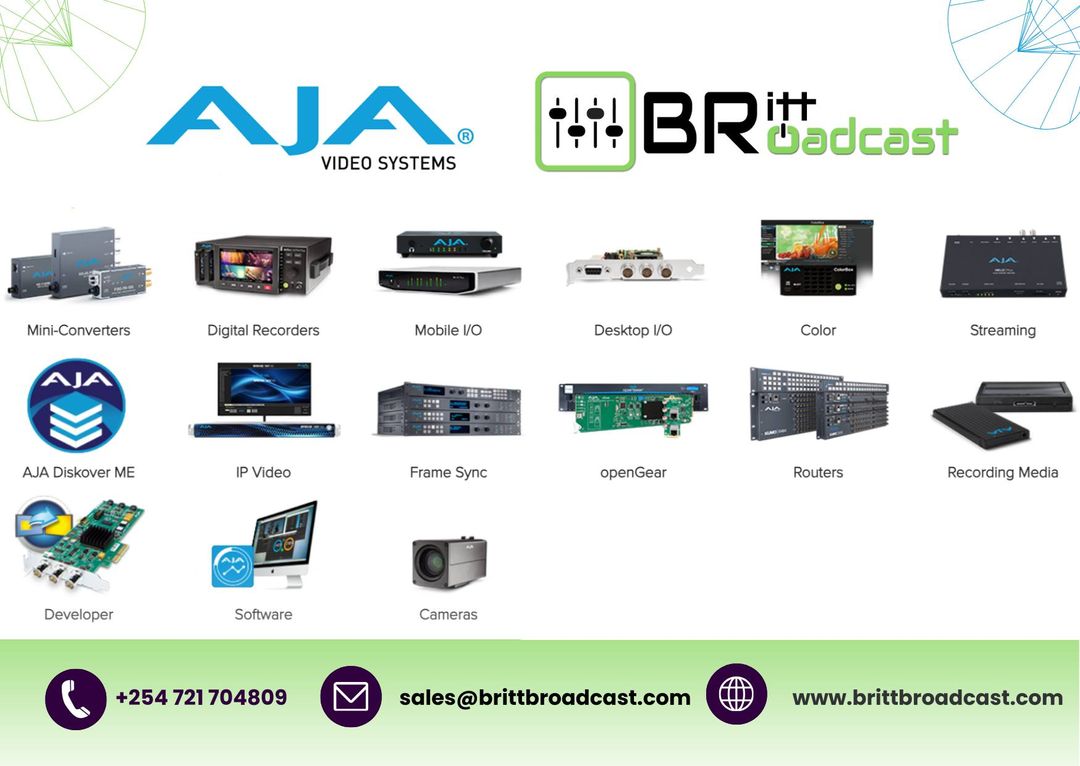 AJA Video Systems is renowned globally for its cutting-edge technology and innovation in the field of professional video and audio equipment. As the official reseller for AJA in the specified African nations, Britt Broadcast brings these world-class solutions directly to your doorstep. Whether you are a broadcast professional, filmmaker, content creator, or production house, you can now access AJA’s top-quality products through a trusted and local source.
