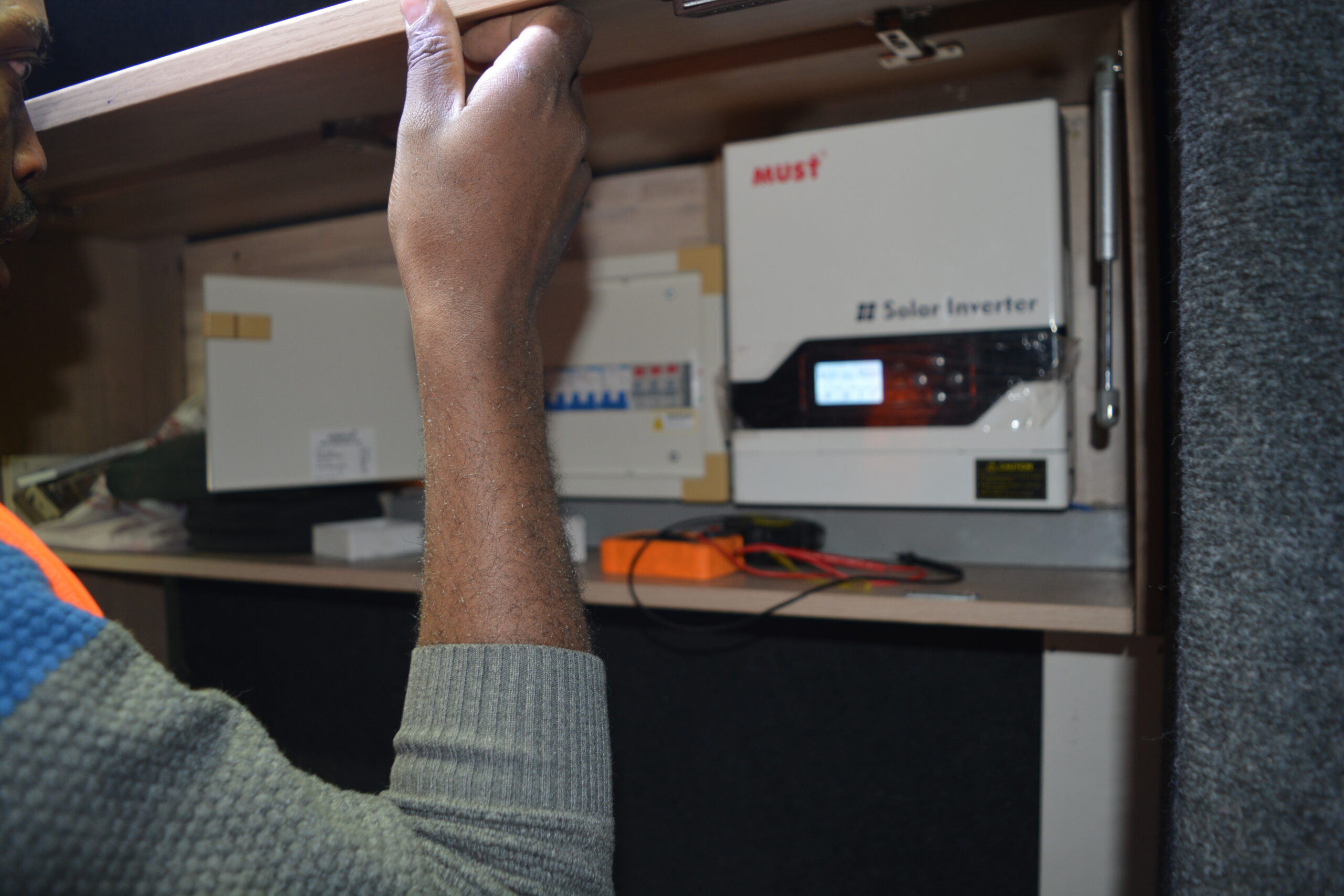The solar system designed was able to run the studio equipment, less the HVAC system, through the night. As an alternative, the vehicle’s inbuilt HVAC system could be used at night. The Shure dynamic mics have great sound and could cancel the ambient and engine noise, giving a clean noise-free sound on the recording.